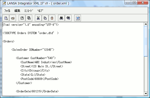 XML エディタはファイルを読み込むときにXMLソースのエンコーディングを自動的に探知し、バイト ストリームをUnicodeの文字に変換します。