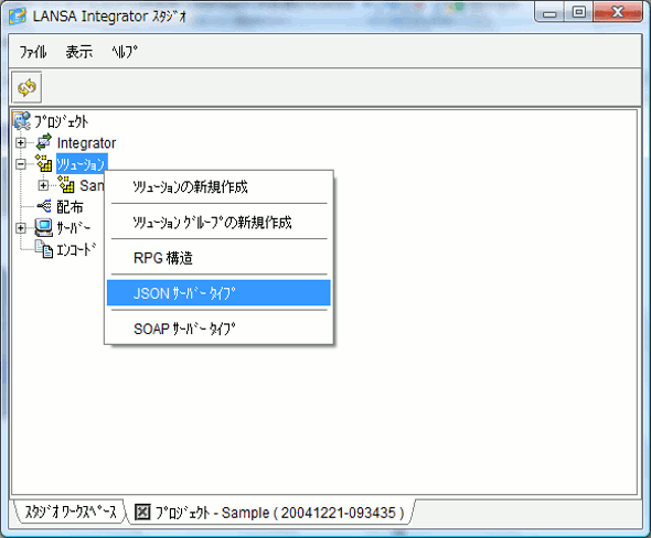 ソリューション・フォルダのポップアップ・メニューで、メニュー・アイテム [JSON サーバー タイプ] を選択します。