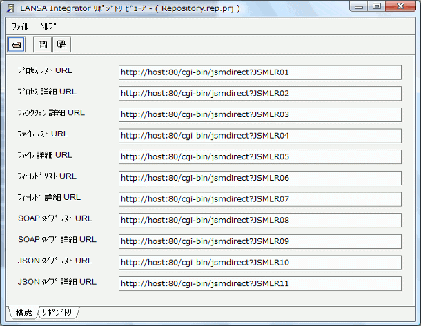6. リポジトリ・ビューアの URL のサービス要求をサポートするダイレクト・サービス・エントリーを作成します。これらのエントリーは、実行する LANSA ファンクションと、使用する区画を指定します。