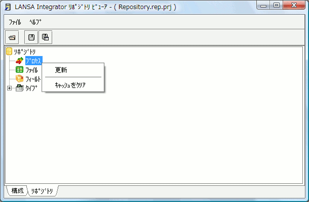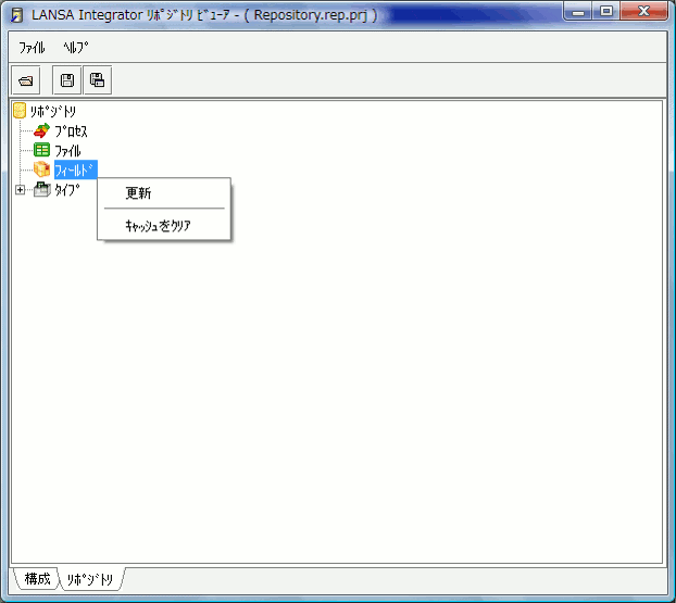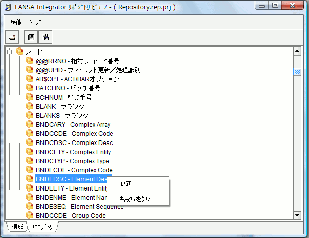 14. リポジトリ・フィールド情報を表示するには、このフィールドのノードをダブルクリックするか、メニュー・アイテム [更新] を選択します。
