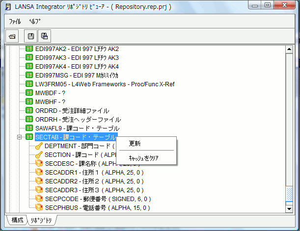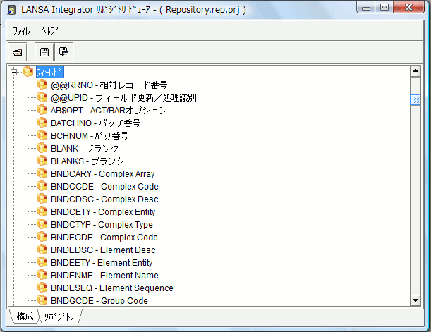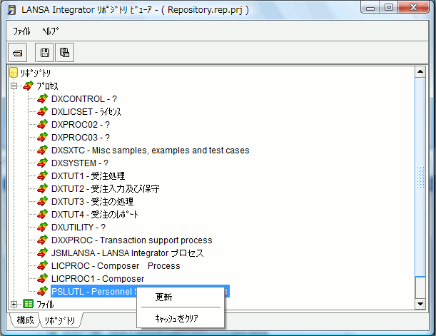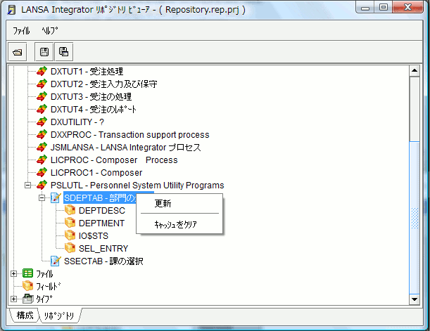 7. [リポジトリ] タブを選択して、LANSA リポジトリを表示します。