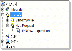 作成したXMLファイルは、Integrator スタジオのXML 要求ソリューション・グループの下に表示されます。