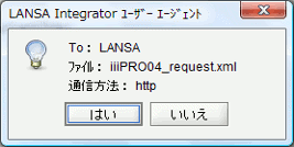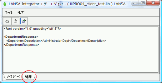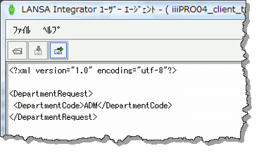 - ユーザー・エージェントに iiiPRO04_client_test.lih をロードし、JSM サーバーのサービス iiiFN04_SERVICE に iiiPRO04_request.xml を送信します。