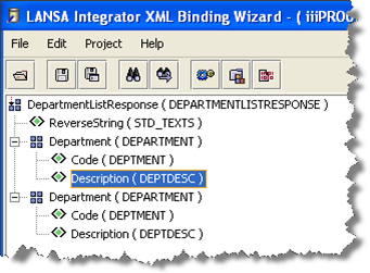 このステップでは、XML バインディング・ウィザードを使用して、アウトバウンド応答バインド iiiPRO05_response.jar を作成します。この jar ファイルは、サーバーからクライアントに送信するアウトバウンド XML をバインドします。LANSAフィールドからXML応答ドキュメントへのマッピングを定義します。