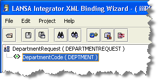 4. XML タグ DepartmentCode を LANSA フィールド DEPTMENT に以下のようにマッピングします。
