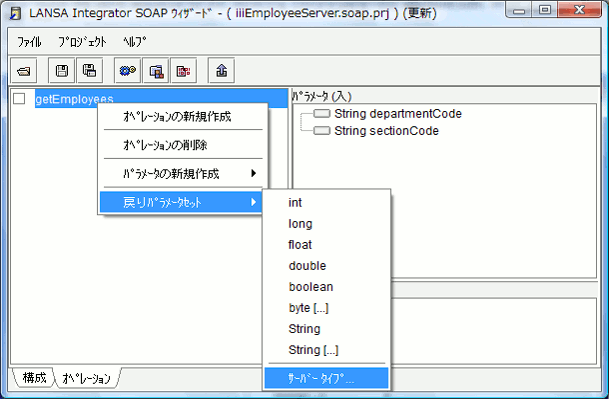- コンテキスト・メニューで [戻りパラメータセット] を選択し、サブメニューで [サーバータイプ...] を選択します。