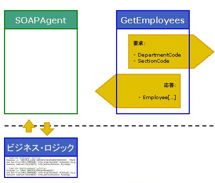 この Webサービス GetEmployees を使用する SOAP エージェントは、サーバーに部門と課を渡します。