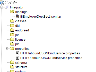1. プロジェクト・ペインの properties フォルダのプロパティ・ファイル HTTPInboundJSONBindService.properties を選択して強調表示します。