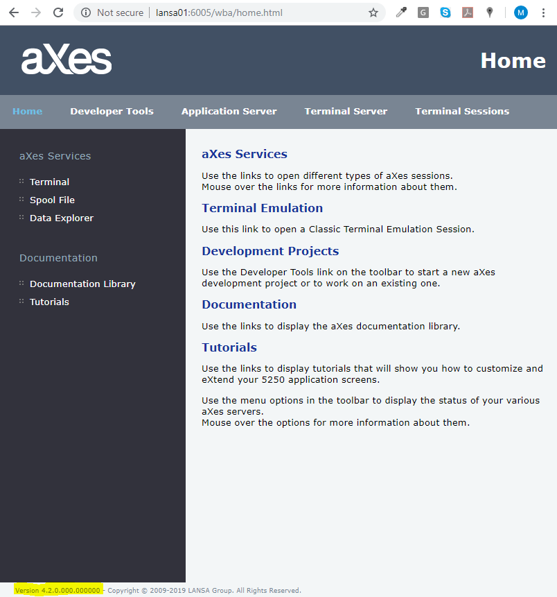 表示されたページの左下に aXes のバージョン番号が以下の例のように示されています。