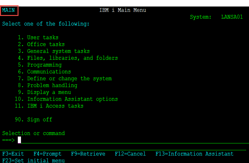 RAMP デモ実行時に使用するユーザーは、サインオン時に以下のような IBM i メイン・メニューになる必要があります。
