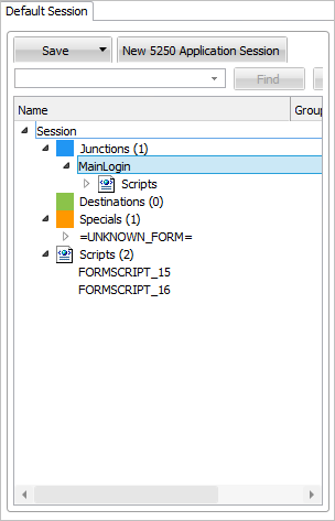 画面とスクリプトのリストには、フレームワークで定義されているすべての 5250 画面と関連するスクリプトが表示されます。