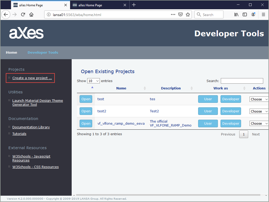 左ペインの [新規プロジェクトを作成...] のリンクをクリックします。