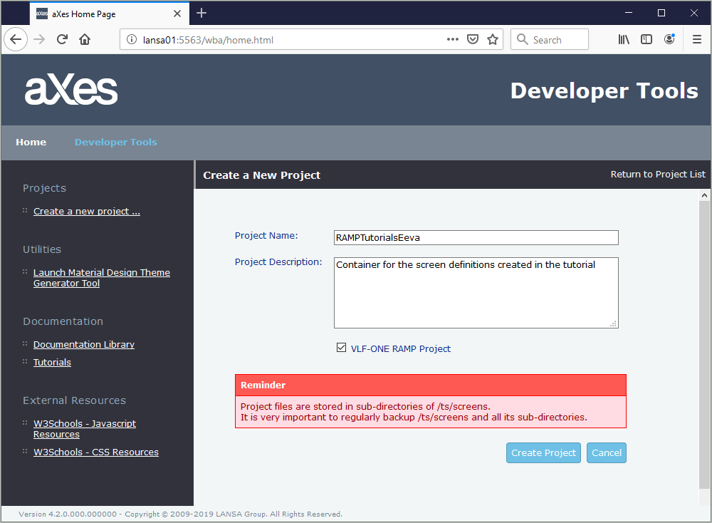 VLF-ONE RAMP プロジェクトのチェックボックスにチェックマークが入っていることを確認します。