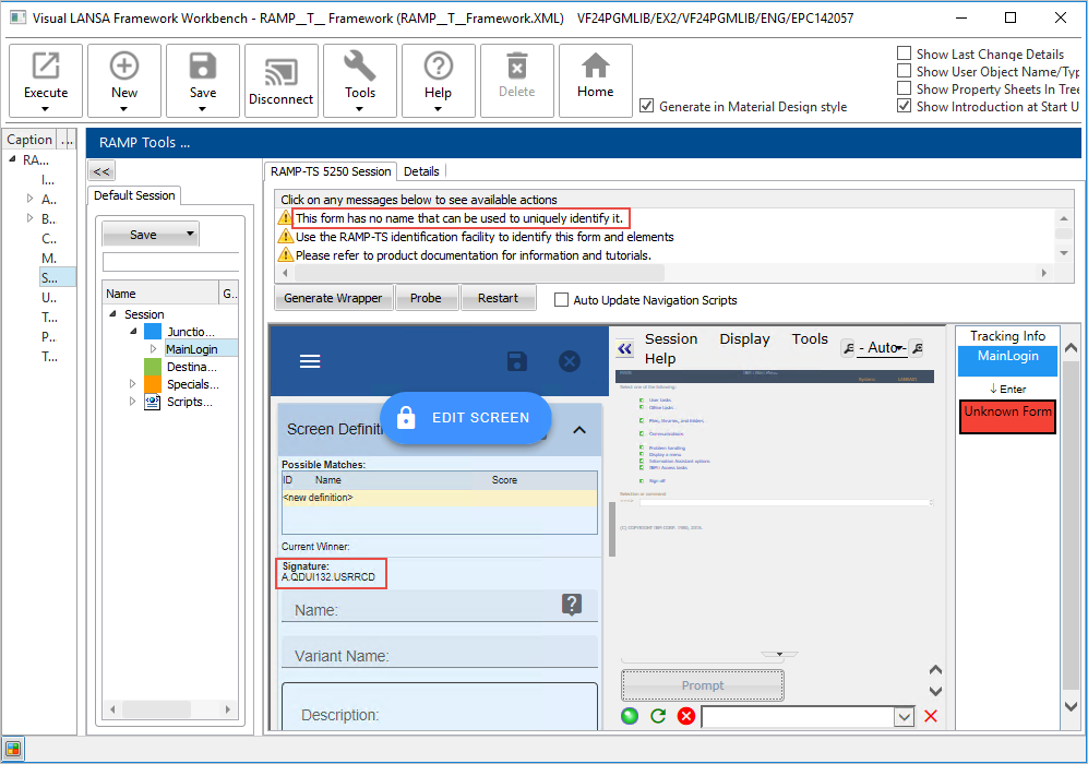 IBM i メインメニューには名前がないため、RAMP は認識しません。