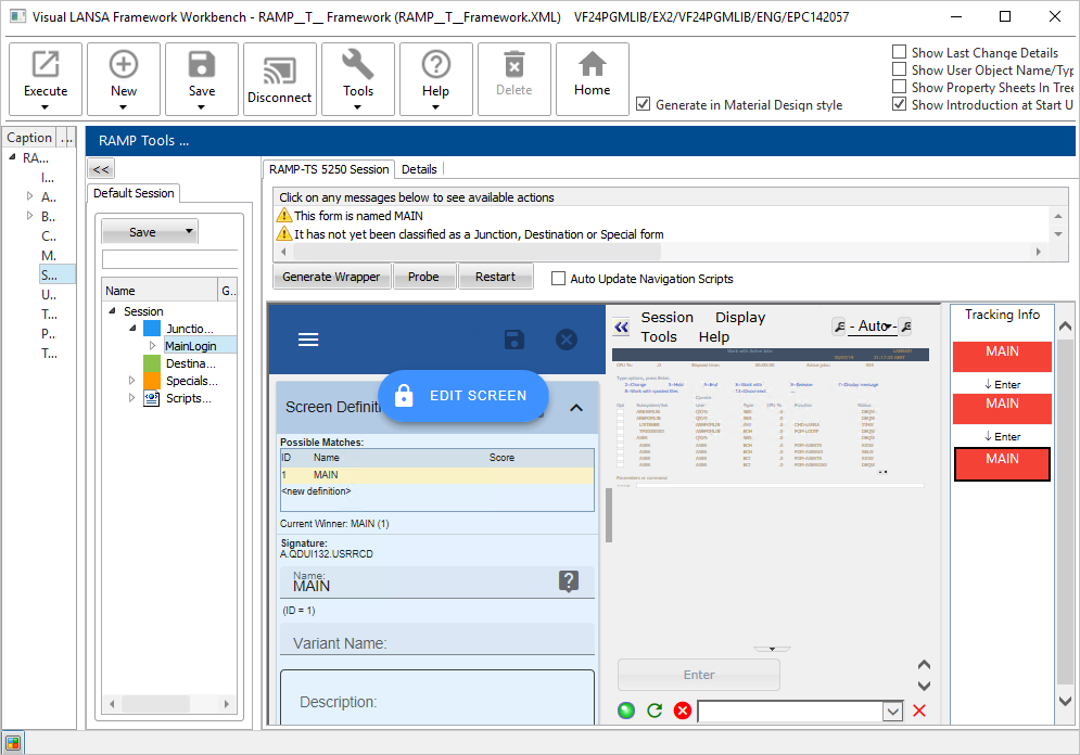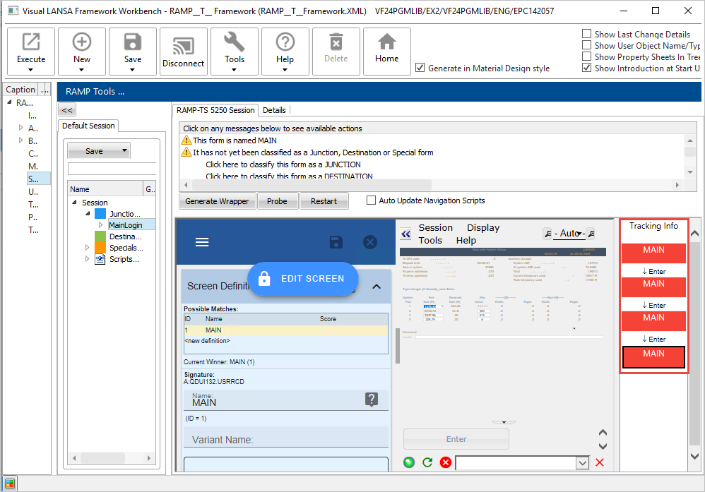 ただし、RAMP にとっては、この画面名は MAIN です。なぜなら、アクティブなジョブの処理の署名は IBM i メインメニューと同じだからです。