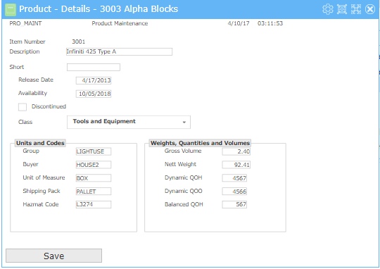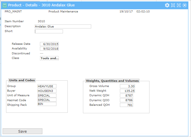 次の図では、デスティネーション PRO_MAINT はセッションから継承したレイアウトと寸法を使用しています。