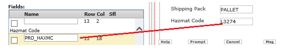 - コードのフィールドの (キャプションではなく) 名前に PRO_HAXMC を設定します。