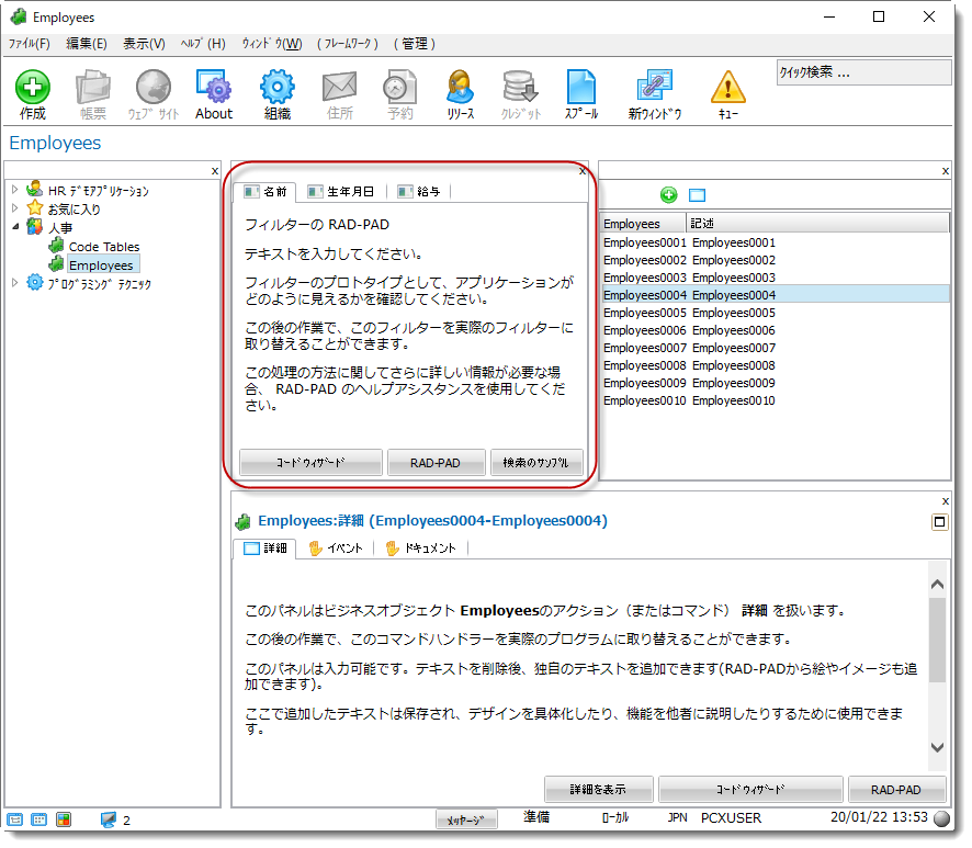 エンドユーザーが社員情報をどのように取得したいのかを探り出すために、(どの論理ファイルが定義されているかに関係なく) エンド・ユーザーにとって便利であろうと思われる様々な方法で、データ検索のプロトタイプ・フィルターを提供する必要があります。
