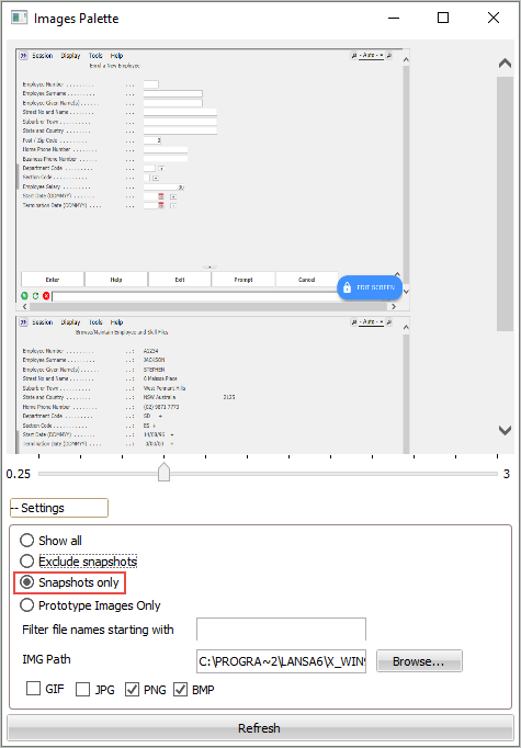 - [イメージ・パレット] ウィンドウで、[スナップショットのみ] ラジオ・ボタンをクリックします。