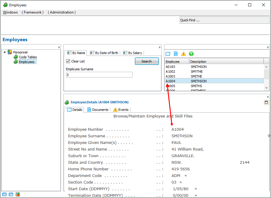 これで選択した社員の適切な詳細が表示されます。何らかの理由により社員の詳細を表示できない場合は、フレームワークを再起動します。