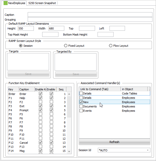 1. RAMP ツールウィンドウで、画面とスクリプトのリスト のデスティネーション画面  NewEmployee を選択します。