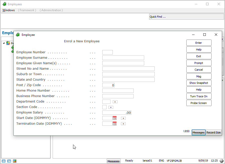 6. 新しい社員の詳細を入力し、Enter キーを押して保存します。