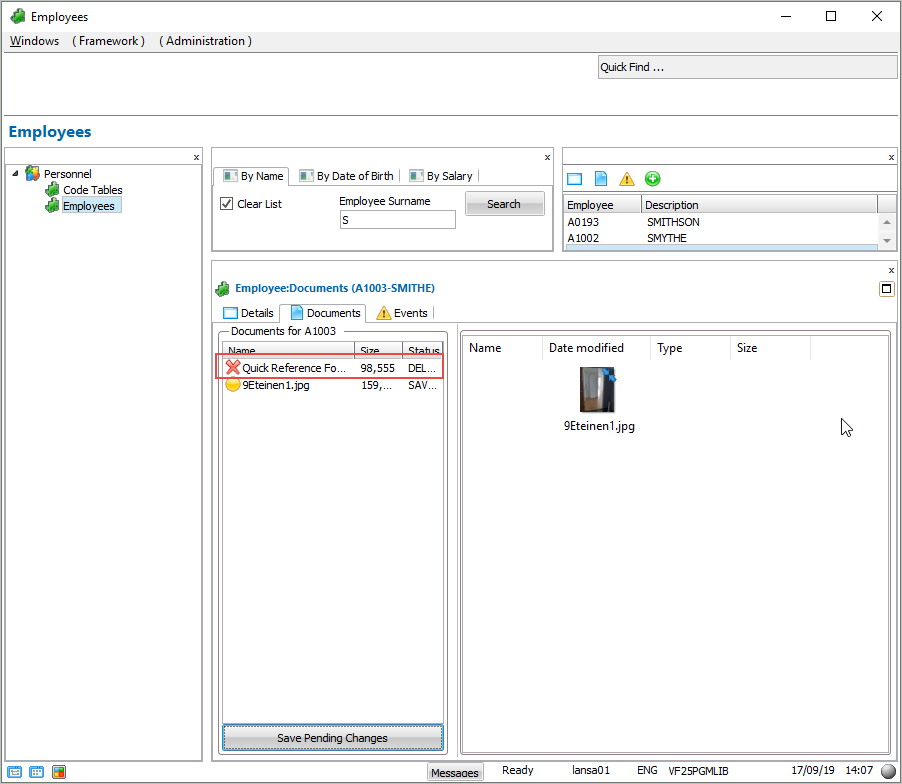 - [削除] を選択します。ドキュメント・コマンド・ハンドラーに削除が保留されていることが示されます。