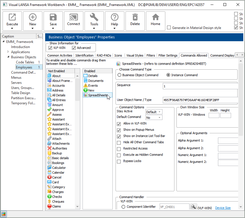 - Employees ビジネス・オブジェクトおよび Spreadsheets コマンド・ハンドラーを選択します。