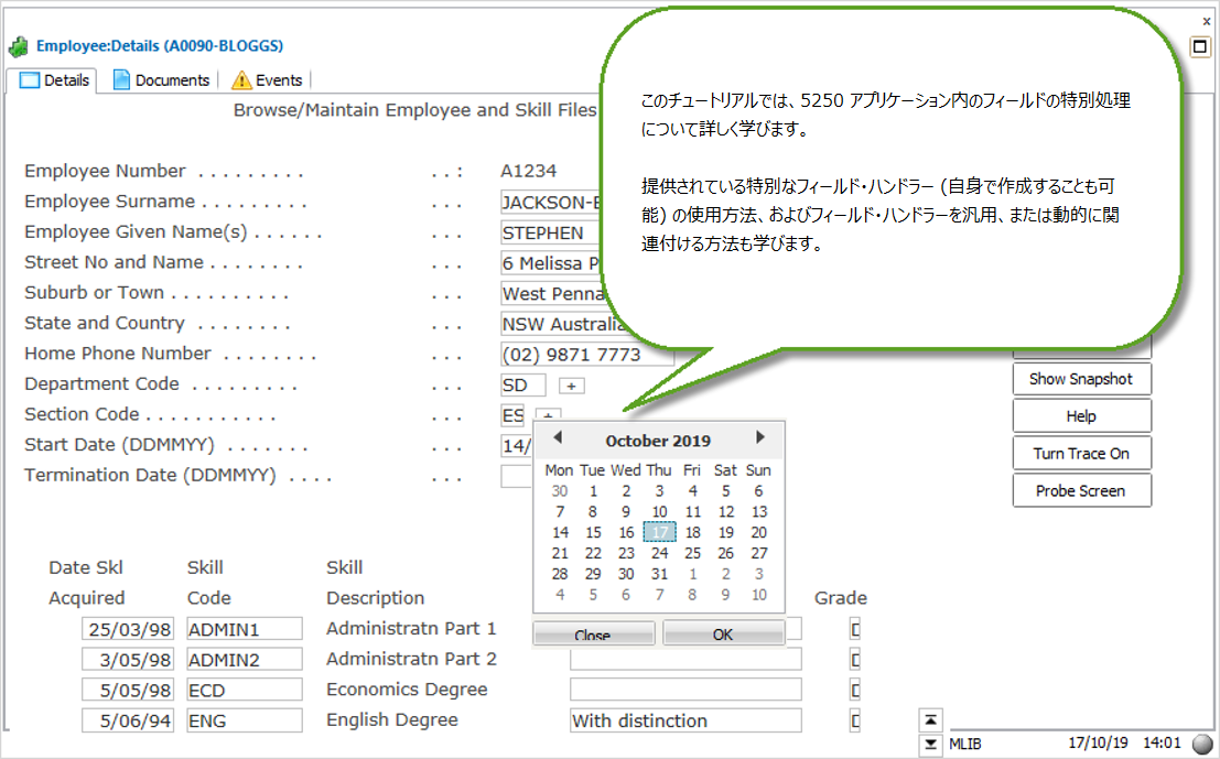 RAMP の特別なフィールド処理 (プロンプト) を使用すると、既存の 5250 画面に機能や付加価値を追加できます。特別なフィールド・ハンドラーは、PC 上で実行される Visual LANSA フォームで、5250 アプリケーションでは不可能な機能が作成できます。