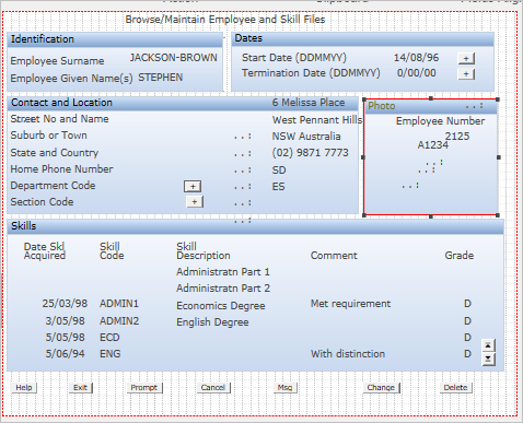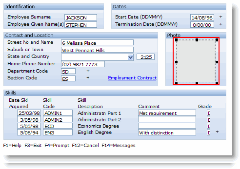 このステップでは、画面の下部に表示されるファンクション・キー・テキストを非表示にし、社員のピクチャーを追加します。