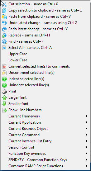 スクリプトポップアップメニューを使用して、スクリプトをフォーマットして編集できます。メニューを表示するには、スクリプト・エリア で右クリックします。
