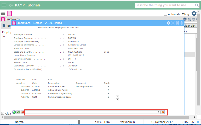 5250 ターミナルのステータス・バーには以下のように表示されます (赤枠内)。